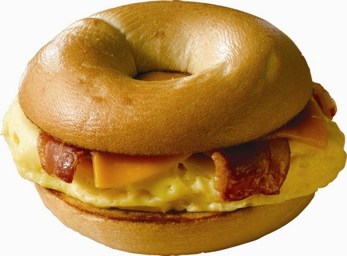 Scrambled egg and cheese sandwich with choice of bacon, sausage, or ham on a hard roll
